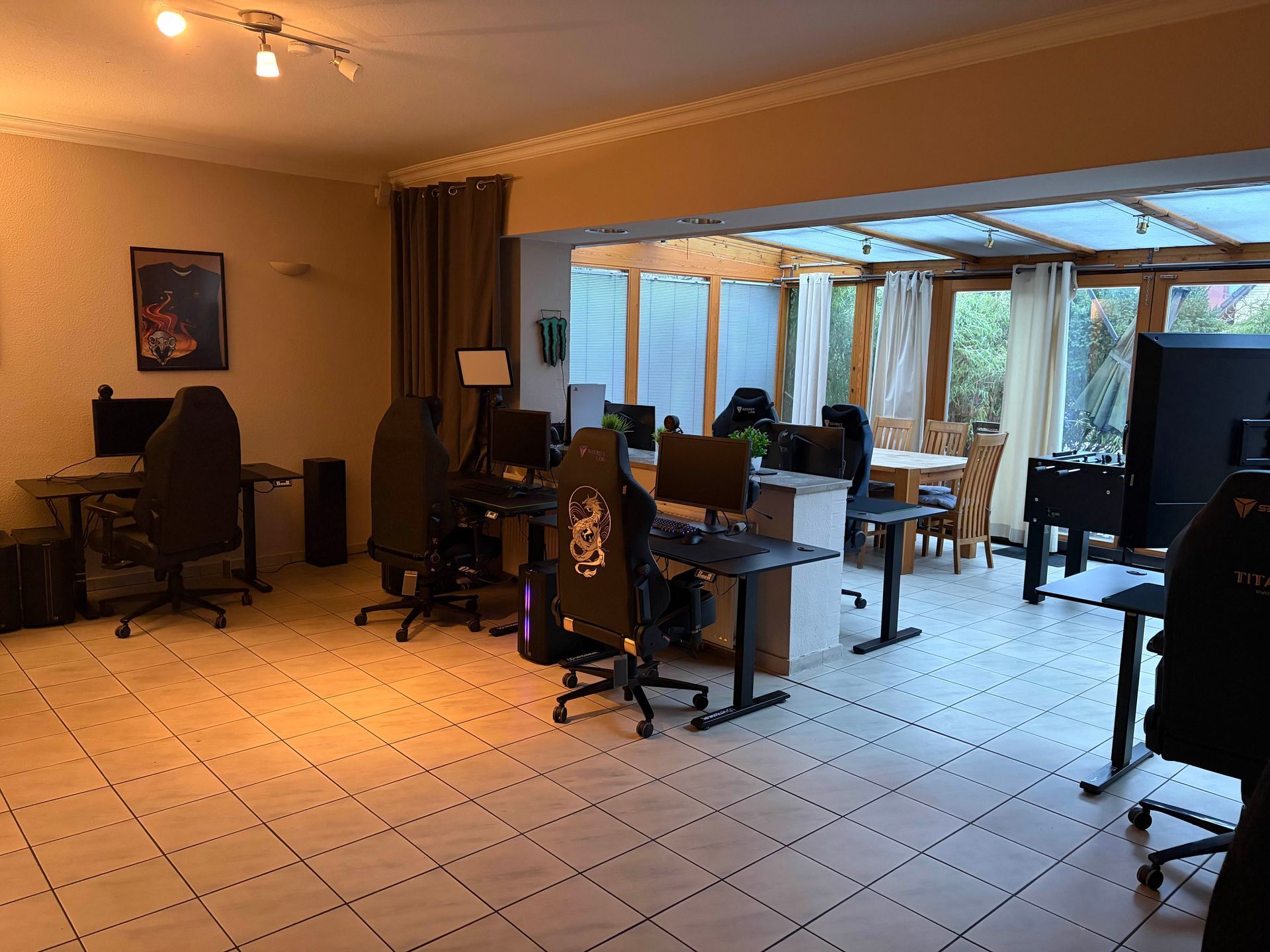 Ein voll ausgestattetes Gaming-Haus mit PCs und Peripherie damit ihr unvergessliche Tage bei uns verbringen könnt. Und falls ihr mal eine Pause vom Zocken braucht, stellt das kein Problem dar - Der riesige Garten mit Terrasse, Grillplatz und Tischtennisplatte lädt zum Entspannen ein!